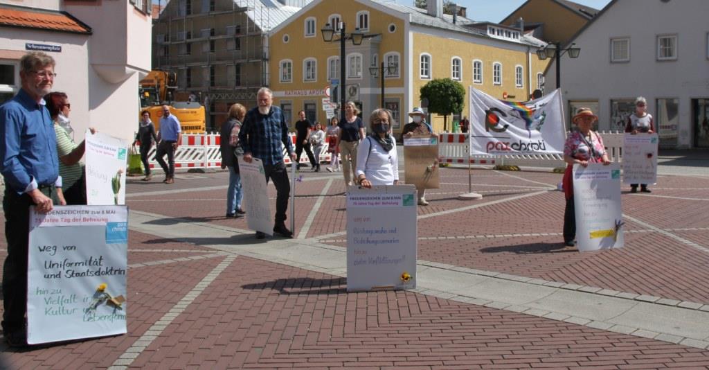 Viel Raum benötigte das erste FRIEDENSZEICHEN nach der Lockerung der Ausgangsbeschränkung auf dem Schrannenplatz. Die zulässige Teilnahme von 50 Personen wurde mit unserer Plakataktion fast erreicht: 75 Jahre Tag der Befreiung. Die Erinnerung an die Befreiung von der zerstörerischen und barbarischen Herrschaft des Krieges, an die Befreiung von der Nazi-Herrschaft und aus den Arbeits- und Vernichtungslagern ist zugleich seit 75 Jahren der Auftrag, unermüdlich daran zu arbeiten, dass es „nie wieder“ dazu kommen darf. Es ist die Verpflichtung gegenüber den Opfern von Krieg, Rassenwahn, Hass-Propaganda, Unterdrückung und Rechtsbeugung, immer wieder alles zu tun, um Menschenrechte und Demokratie zu stärken, das Friedensprojekt Europa zu gestalten, den Rechtsstaat und die Bürgerrechte zu stärken und die friedenspolitische Phantasie zu fördern. Die Corona-Krise verdeutlicht einmal mehr, dass unsere Welt keine Aufrüstung braucht, sondern globale Friedensanstrengungen. PDF: Die Texte auf den Plakaten Web: Hier kann etwas tun: |